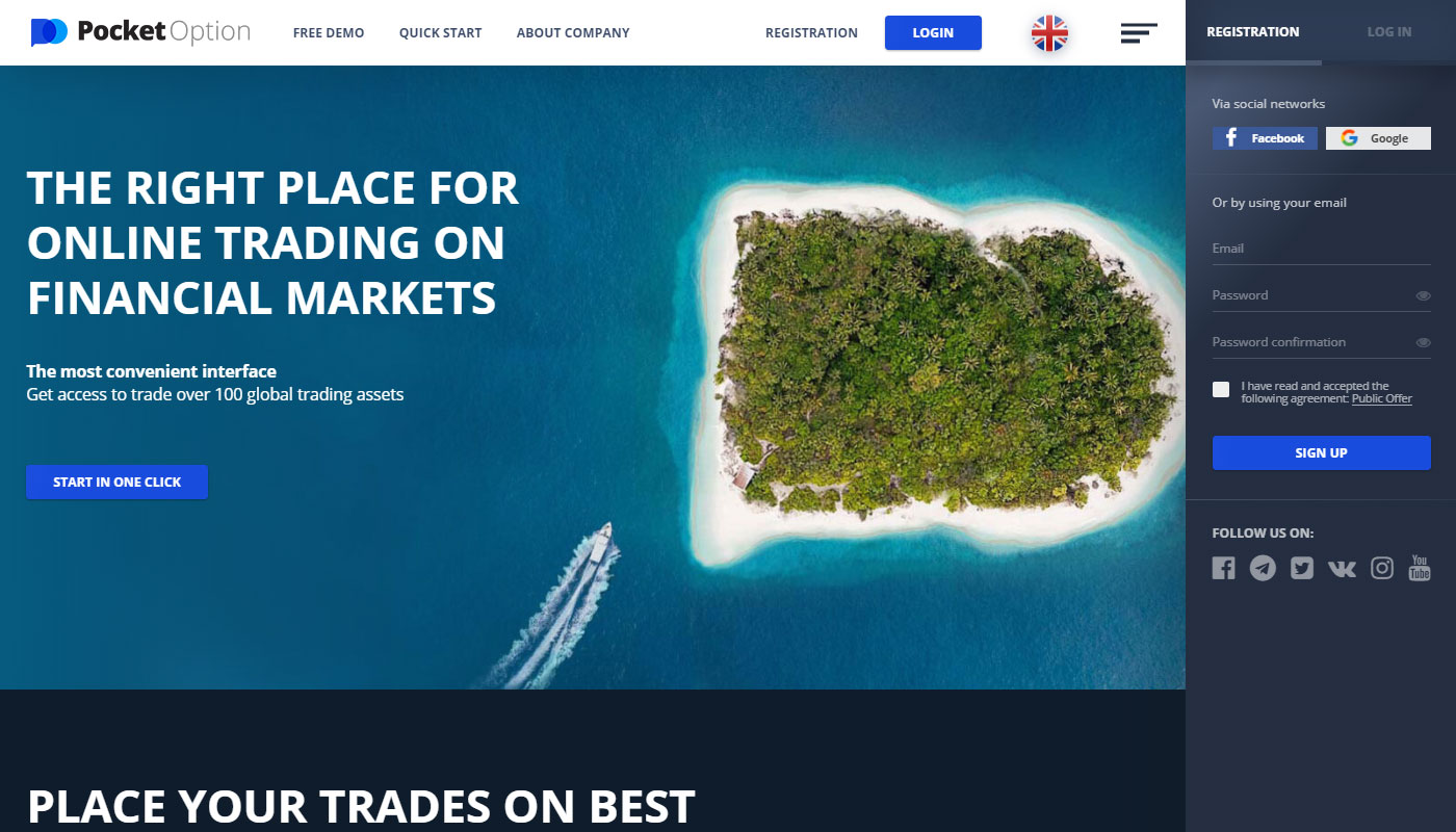 PocketOption was established in 2017 and is based in the Marshall Islands. The website is designed to offer full functionality to traders. It is available in multiple international languages. From the homepage, new clients can create accounts within a few minutes.