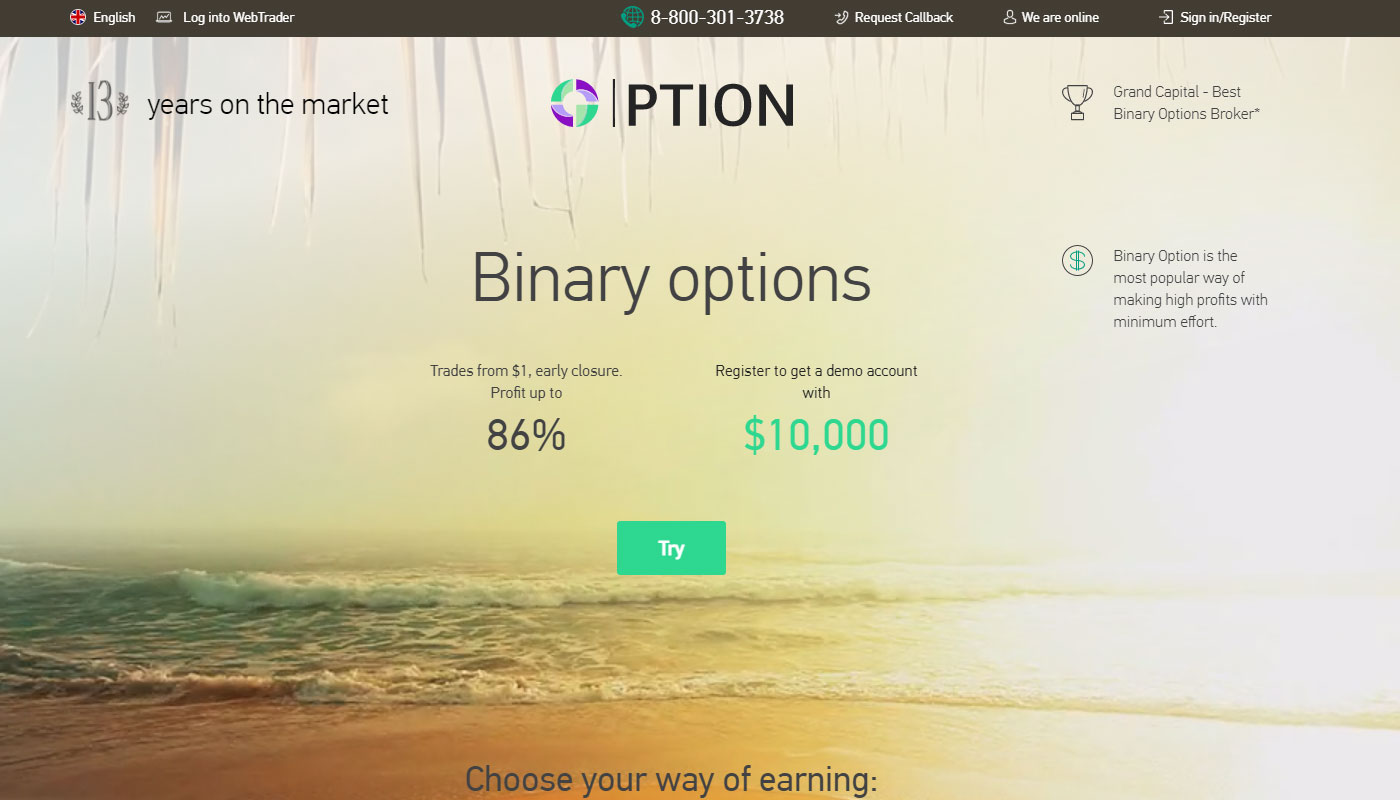 The website is available in over 12 languages and from the homepage, visitors can register new trading accounts. The broker offers binary trading and it is managed by a team of professional traders, market technicians and administrators.